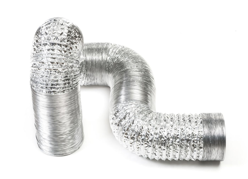 Tuyaux flexibles en aluminium pour systèmes de ventilation dans les bâtiments résidentiels et commerciaux. Idéaux pour la distribution d'air dans les systèmes CVC, la ventilation d'extraction de cuisine, la ventilation de salles de bains et toilettes, la ventilation d'ateliers et garages, et les applications générales de circulation d'air.