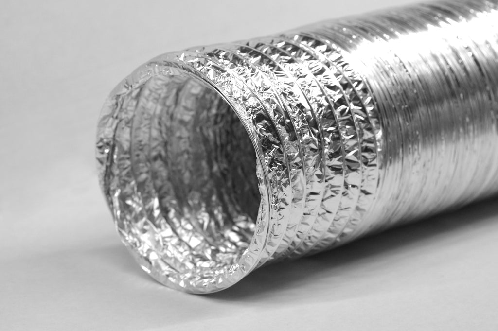 Tuyaux flexibles en aluminium pour systèmes de ventilation dans les bâtiments résidentiels et commerciaux. Idéaux pour la distribution d'air dans les systèmes CVC, la ventilation d'extraction de cuisine, la ventilation de salles de bains et toilettes, la ventilation d'ateliers et garages, et les applications générales de circulation d'air.