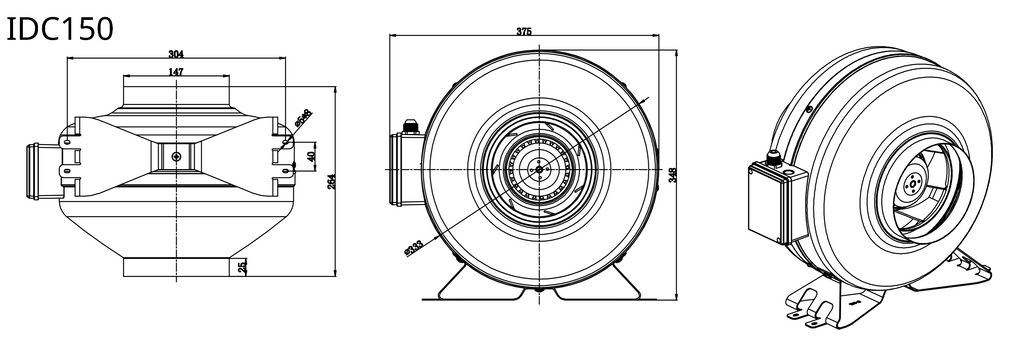 IDC150 – Extracteur centrifuge inline à haute pression pour longs conduits.