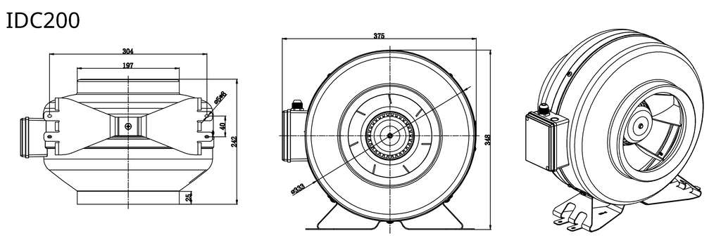 IDC200 – Extracteur centrifuge inline à haute pression pour longs conduits.
