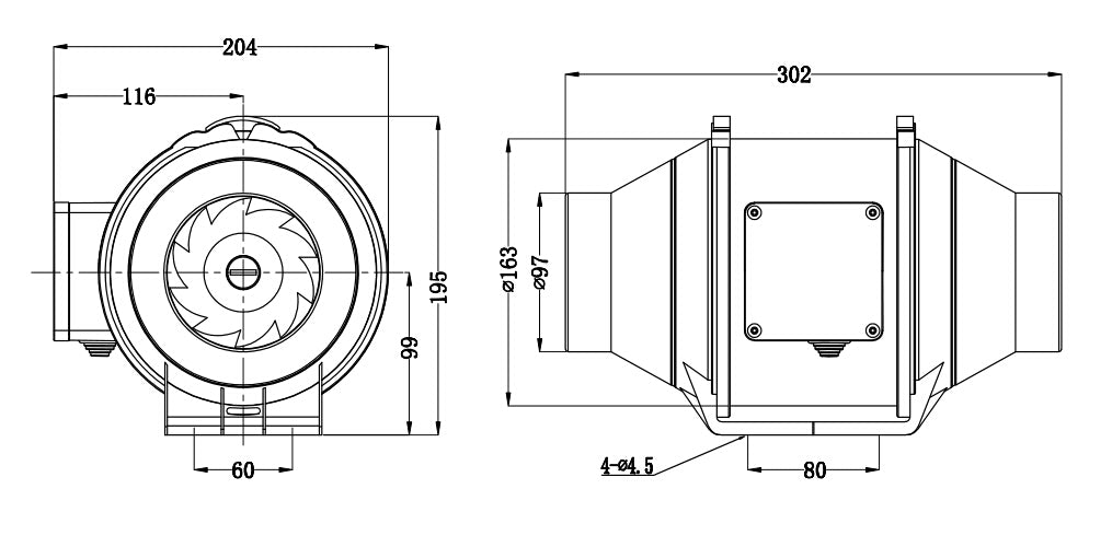 - Dimensions (L×H×P): 204×195×302 mm